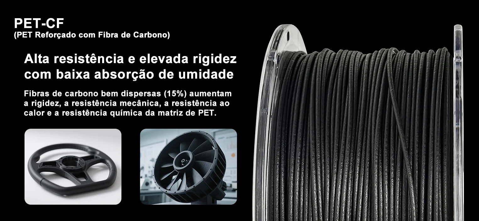 Em todos esses cenários, o PET-CF se destaca pela excelente relação resistência/peso e pela durabilidade.