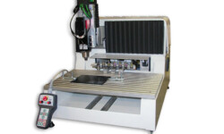 Estrutura em aluminio fundido, porcas revestidas de teflon com sistema de recuperação de folga automático, motor do eixos micro stepping, mesa de alumino estrudado com ranhuras em T.